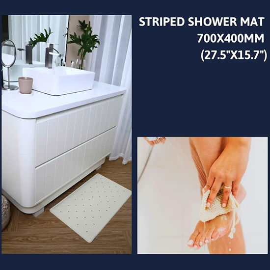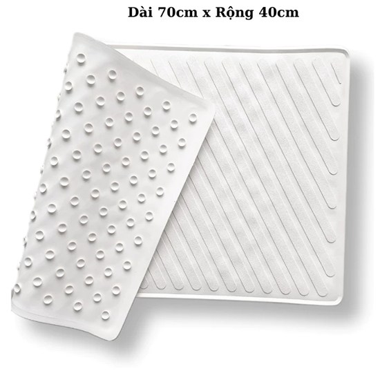 - Mặt trên: Họa tiết sọc dọc nổi, tăng ma sát với bàn chân, giúp chống trơn trượt tuyệt đối, ngay cả khi có nước hoặc xà phòng.