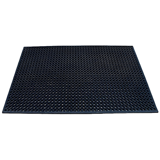 - Bề mặt thảm gồm nhiều lỗ tròn lớn giúp thoát nước nhanh, tránh đọng nước, dầu, hoặc vụn thức ăn.