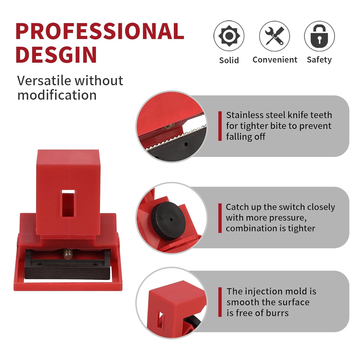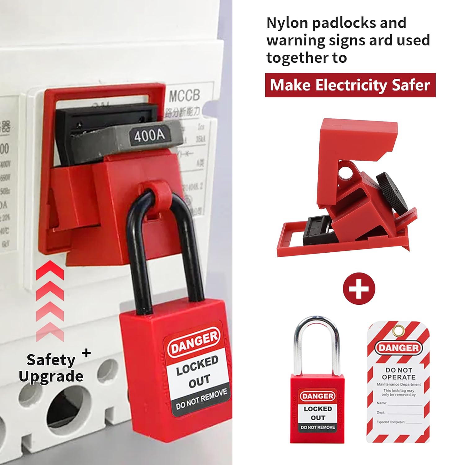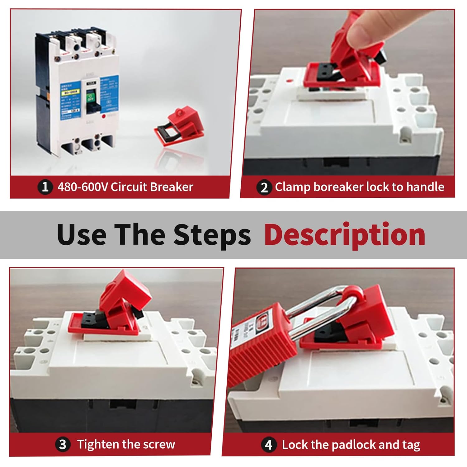 - Sự không tương thích vật lý: Các dòng MCB/MCCB 480V-600V thường có cần gạt lớn (lên đến 41mm). Các loại khóa thông thường sẽ bị trượt, lỏng lẻo, tạo ra một rào cản an toàn "giả tạo".